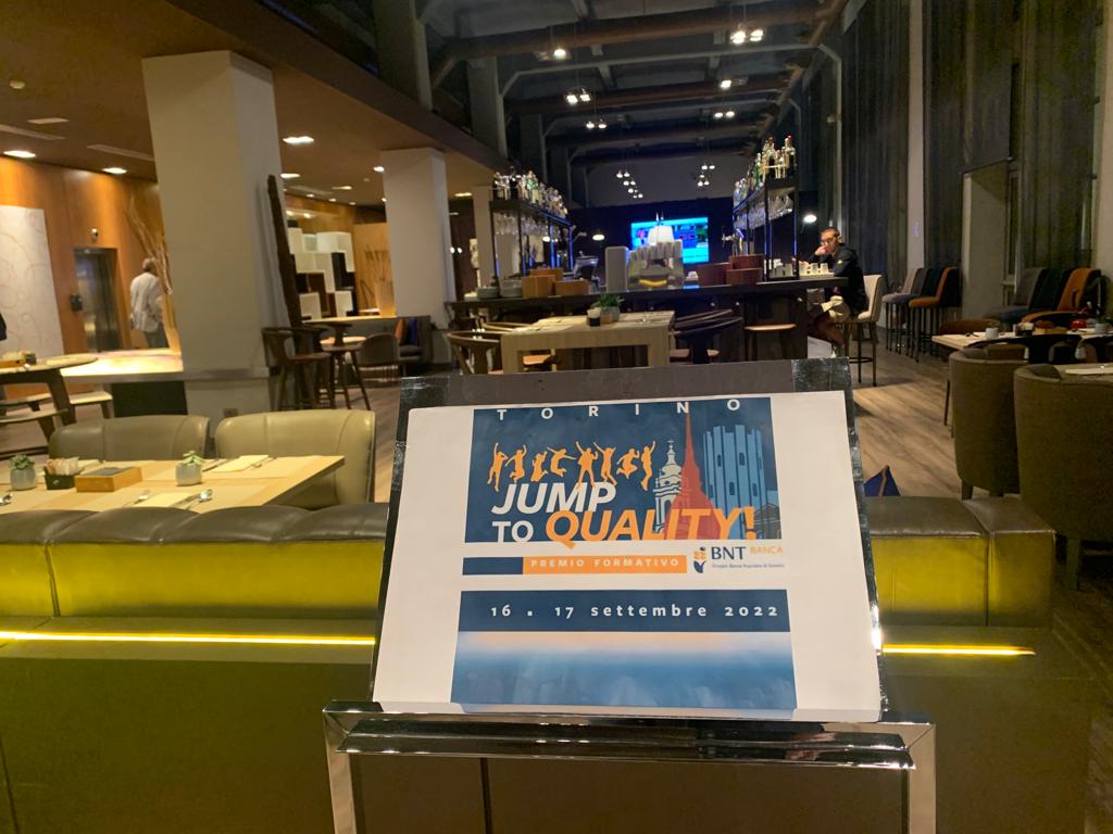 IL CONTEST – “Jump to Quality”, la due giorni del Premio formativo 2022 di BNT Banca dedicata ai top performer della rete agenziale della capogruppo Banca Popolare di Sondrio e di BNT Banca, si è rivelata un momento di forte consolidamento delle relazionial di fuori del contesto lavorativo. Filo ispiratore, lo speech motivazione di Mauro Berruto – un felice connubio che si rinsalda da Roma a Torino – in un luogo speciale, non banale, dove le parole diventano vita e si fanno orizzonte di senso, stimolo operativo per una quotidianità personale, lavorativa e di gruppo.